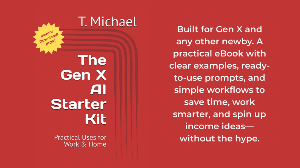 Gen X AI Starter Kit eBook: practical prompts & workflows to save time, work smarter, and grow side income—no jargon, just results.